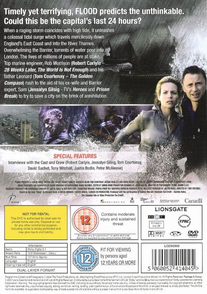 Timely yet terrifying, The Flood predicts the unthinkable. When a raging storm coincides with high seas it unleashes a colossal tidal surge, which travels mercilessly down England's East Coast and into the Thames Estuary. Overwhelming the Barrier, torrents of water pour into the city. The lives of millions of Londoners are at stake.