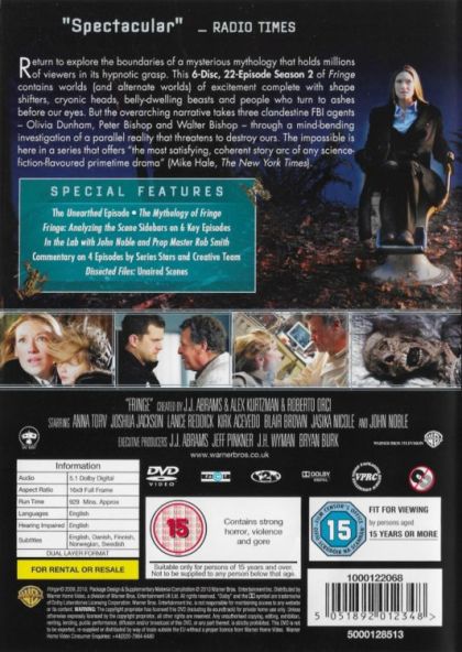 Teleportation. Mind control. Invisibility. Astral projection. Mutation. Reanimation. Phenomena that exist on the Fringe of science unleash their strange powers in this thrilling series, co-created by J.J. Abrams (Lost, Alias), combining the grit of the police procedural with the excitement of the unknown. The story revolves around three unlikely colleagues - a beautiful young FBI agent, a brilliant scientist who’s spent the last 17 years in a mental institution and the scientist’s sardonic son - who investigate a series of bizarre deaths and disasters known as "the pattern." Someone is using our world as an experimental lab. And all clues lead to Massive Dynamic, a shadowy global corporation that may be more powerful than any nation.
