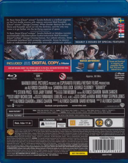 Dr. Ryan Stone, a brilliant medical engineer, is on her first Shuttle mission, with veteran astronaut Matt Kowalski in command of his last flight before retiring. But on a seemingly routine spacewalk, disaster strikes. The Shuttle is destroyed, leaving Stone and Kowalski completely alone-tethered to nothing but each other and spiraling out into the blackness of space. The deafening silence tells them they have lost any link to Earth and any chance for rescue. As fear turns to panic, every gulp of air eats away at what little oxygen is left. But the only way home may be to go further out into the terrifying expanse of space.