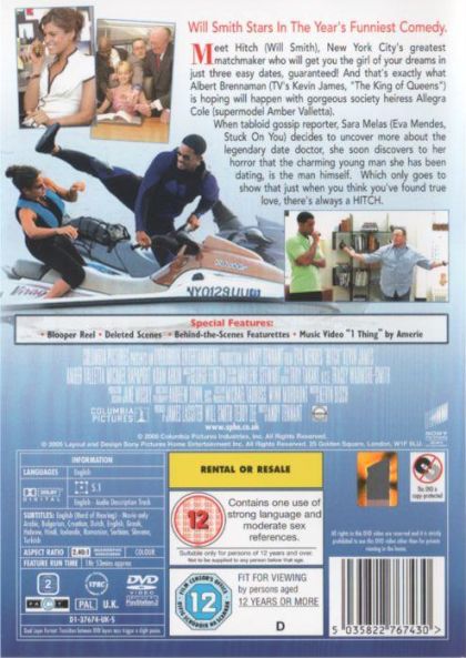 Dating coach Alex 'Hitch' Hitchens mentors a bumbling client, Albert, who hopes to win the heart of the glamorous Allegra Cole. While Albert makes progress, Hitch faces his own romantic setbacks when proven techniques fail to work on Sara Melas, a tabloid reporter digging for dirt on Allegra Cole's love life. When Sara discovers Hitch's connection to Albert – now Allegra's boyfriend – it threatens to destroy both relationships.
