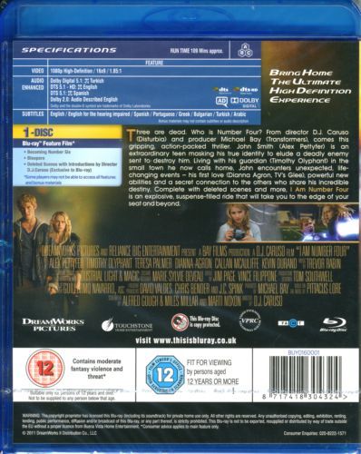 A teenage fugitive with an incredible secret races to stay one step ahead of the mysterious forces seeking destroy him in this sci-fi action thriller. With three dead and one on the run, the race to find the elusive Number Four begins. Outwardly normal teen John Smith never gets too comfortable in the same identity, and along with his guardian, Henri, he is constantly moving from town to town. With each passing day, John gains a stronger grasp on his extraordinary new powers, and his bond to the beings that share his fantastic fate grows stronger.