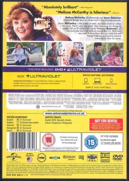 When a mild-mannered businessman learns his identity has been stolen, he hits the road in an attempt to foil the thief -- a trip that puts him in the path of a deceptively harmless-looking woman.