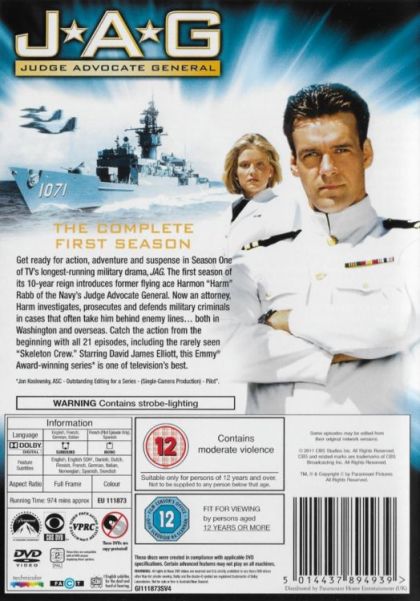 JAG (military-speak for Judge Advocate General) is an adventure drama about an elite wing of officers trained as lawyers who investigate, prosecute and defend those accused of crimes in the military. Navy Cmdr. Harmon "Harm" Rabb (David James Elliott), an ace pilot turned lawyer, and Marine Lt. Col. Sarah "Mac" MacKenzie (Catherine Bell), a beautiful by-the-book officer, are colleagues who hold the same high standards but find themselves clashing when they choose different routes to get to the same place. The unmistakable chemistry between them must be held at bay for professional reasons as they traverse the globe together with a single mission: to search for and discover the truth. Helping them with their mission is Navy Lt. Cmdr. Bud Roberts (Patrick Labyorteaux), a lawyer who proved his grit and determination when, after losing a leg in a land mine field while on a mission, fought back and became even better at his job.