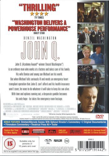 John Quincy Archibald is a father and husband whose son is diagnosed with an enlarged heart and then finds out he cannot receive a transplant because HMO insurance will not cover it. Therefore, he decides to take a hospital full of patients hostage until the hospital puts his son's name on the donor's list.