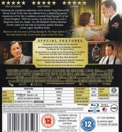 The King's Speech tells the story of the man who became King George VI, the father of Queen Elizabeth II. After his brother abdicates, George ('Bertie') reluctantly assumes the throne. Plagued by a dreaded stutter and considered unfit to be king, Bertie engages the help of an unorthodox speech therapist named Lionel Logue. Through a set of unexpected techniques, and as a result of an unlikely friendship, Bertie is able to find his voice and boldly lead the country into war.