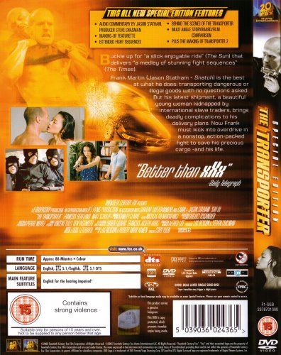 Former Special Forces officer Frank Martin will deliver anything to anyone for the right price, and his no-questions-asked policy puts him in high demand. But when he realizes his latest cargo is alive, it sets in motion a dangerous chain of events. The bound and gagged Lai is being smuggled to France by a shady American businessman, and Frank works to save her as his own illegal activities are uncovered by a French detective.