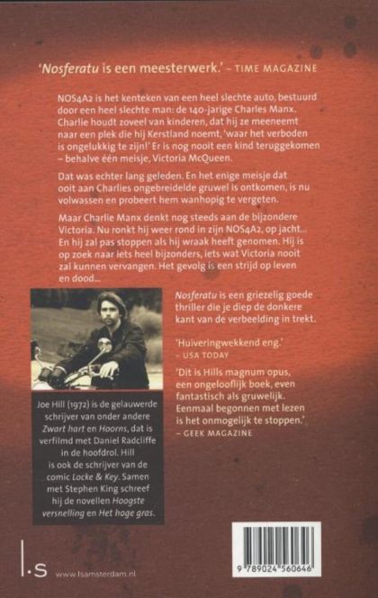 Een 140-jarige man rijdt al tientallen jaren rond in zijn Rolls Royce uit het jaar 1938 met het kenteken NOS4A2 om kinderen te vinden die hij meeneemt naar Kerstland, een plaats waar blijdschap verplicht is.