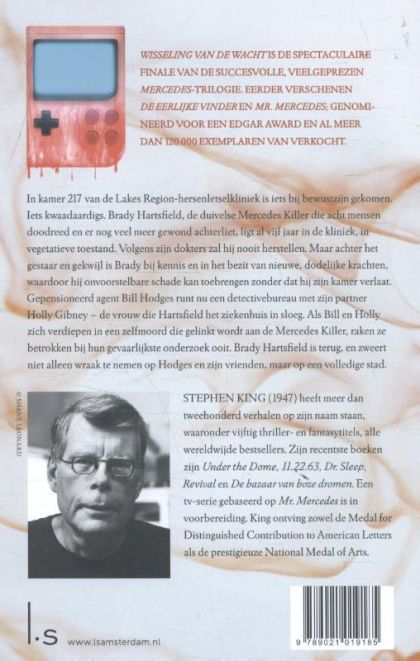Wisseling van de wacht is de spectaculaire finale van de succesvolle, veelgeprezen Mercedes-trilogie van Stephen King. Eerder verschenen De eerlijke vinder en Mr. Mercedes, genomineerd voor een Edgar Award.
