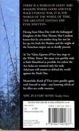 Fleeing from Ebou Dar with the kidnapped Daughter of the Nine Moons, whom he is fated to marry, Mat Cauthon learns that he can neither keep her nor let her go, not in safety for either of them, for both the Shadow and the might of the Seanchan Empire are in deadly pursuit. Perrin Aybara seeks to free his wife, Faile, a captive of the Shaido, but his only hope may be an alliance with the enemy. Can he remain true to his friend Rand and to himself? For his love of Faile, Perrin is willing to sell his soul. At Tar Valon, Egwene al'Vere, the young Amyrlin of the rebel Aes Sedai, lays siege to the heart of Aes Sedai power, but she must win quickly, with as little bloodshed as possible, for unless the Aes Sedai are reunited, only the male Asha'man will remain to defend the world against the Dark One, and nothing can hold the Asha'man themselves back from total power except the Aes Sedai and a unified White Tower. In Andor, Elayne Trakand fights for the Lion Throne that is hers by right, but enemies and Darkfriends surround her, plotting her destruction. If she fails, Andor may fall to the Shadow, and the Dragon Reborn with it. Rand al'Thor, the Dragon Reborn himself, has cleansed the Dark One's taint from the male half of the True Source, and everything has changed. Yet nothing has, for only men who can channel believe that saidin is clean again, and a man who can channel is still hated and feared -- even one prophesied to save the world. Now, Rand must gamble again, with himself at stake, and he cannot be sure which of his allies are really enemies.