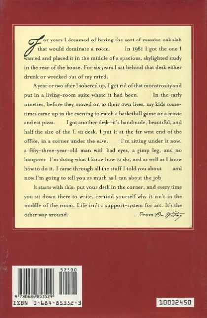 "If you don't have the time to read, you don't have the time or the tools to write."In 1999, Stephen King began to write about his craft -- and his life. By midyear, a widely reported accident jeopardized the survival of both. And in his months of recovery, the link between writing and living became more crucial than ever.Rarely has a book on writing been so clear, so useful, and so revealing. On Writing begins with a mesmerizing account of King's childhood and his uncannily early focus on writing to tell a story. A series of vivid memories from adolescence, college, and the struggling years that led up to his first novel, Carrie, will afford readers a fresh and often very funny perspective on the formation of a writer. King next turns to the basic tools of his trade -- how to sharpen and multiply them through use, and how the writer must always have them close at hand. He takes the reader through crucial aspects of the writer's art and life, offering practical and inspiring advice on everything from plot and character development to work habits and rejection. Serialized in the New Yorker to vivid acclaim, On Writing culminates with a profoundly moving account of how King's overwhelming need to write spurred him toward recovery, and brought him back to his life.Brilliantly structured, friendly and inspiring, On Writing will empower -- and entertain -- everyone who reads it.