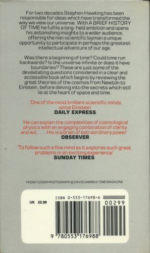 In the ten years since its publication in 1988, Stephen Hawking's classic work has become a landmark volume in scientific writing, with more than nine million copies in forty languages sold worldwide. That edition was on the cutting edge of what was then known about the origins and nature of the universe. But the intervening years have seen extraordinary advances in the technology of observing both the micro- and the macrocosmic worlds. These observations have confirmed many of Professor Hawking's theoretical predictions in the first edition of his book, including the recent discoveries of the Cosmic Background Explorer satellite (COBE), which probed back in time to within 300,000 years of the universe's beginning and revealed wrinkles in the fabric of space-time that he had projected. Eager to bring to his original text the new knowledge revealed by these observations, as well as his own recent research, Professor Hawking has prepared a new introduction to the book, written an entirely new chapter on wormholes and time travel, and updated the chapters throughout.