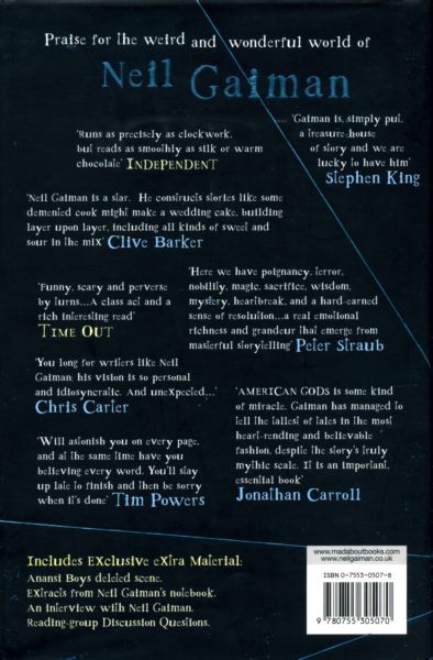 Fat Charlie Nancy is not actually fat. He was fat once but he is definitely not fat now. No, right now Fat Charlie Nancy is angry, confused and more than a little scared - right now his life is spinning out of control, and it is all his dad's fault. If his rotter of an estranged father hadn't dropped dead at a karaoke night, Charlie would still be blissfully unaware that his dad was Anansi the spider god. He would have no idea that he has a brother called Spider, who is also a god. And there would be no chance that said brother would be trying to take over his life, flat and fiancee, or, to make matters worse, be doing a much better job of it than him. Desperate to reclaim his life, Charlie enlists the help of four more-than-slightly eccentric old ladies and their unique brand of voodoo - and between them they unleash a bitter and twisted force to get rid of Spider. But as darkness descends and badness begins is Fat Charlie Nancy going to get his life back in one piece or is he about to enter a whole netherworld of pain? Includes extra material exclusive to Headline Review's edition