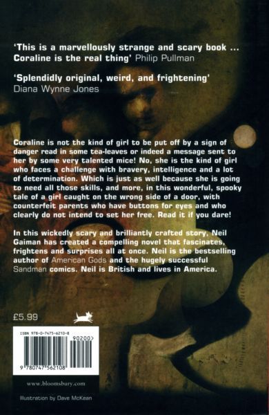 Coraline is not the kind of girl to be put off by a sign of danger read in some tea-leaves or indeed a message sent to her by some very talented mice! No, she is the kind of girl who faces a challenge with bravery, intelligence and a lot of determination. Which is just as well because she is going to need all those skills, and more, in this wonderful, spooky tale of a girl caught on the wrong side of a door, with counterfeit parents who have buttons for eyes and who clearly do not intend to set her free. Read it if you dare! In this wickedly scary and brilliantly crafted story, Neil Gaiman has created a compelling novel that fascinates, frightens and surprises all at once. Neil is the best-selling author of American Gods and the hugely successful Sandman comics.