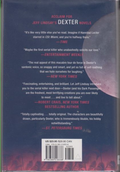 "One of the most likable vigilante serial killers" (The New Yorker) faces his ultimate adversary...an evil so terrifying it scares away Dexter's inner monster--and nearly dries up his sense of humor--in this wickedly witty, darkly suspenseful novel. In his work as a Miami crime scene investigator, Dexter Morgan is accustomed to seeing evil deeds...particularly because, on occasion, he rather enjoys committing them himself. Guided by his Dark Passenger (the reptilian voice inside him), he lives his outwardly normal life adhering to one simple rule: he kills only very bad people. Dexter slides through life undetected, working as a blood spatter analyst for the Miami Police Department, helping his fianc� raise her two adorable (if somewhat...unique) children, and always planning his next jaunt as Dexter the Dark Avenger under the light of the full moon. But then everything changes. Dexter is called to a crime scene that seems routine: a gruesome double homicide at the university campus, which Dexter would normally investigate with gusto, before enjoying a savory lunch. And yet this scene feels terribly wrong. Dexter's Dark Passenger senses something it recognizes, something utterly chilling, and the Passenger--mastermind of Dexter's homicidal prowess--promptly goes into hiding. With his Passenger on the run, Dexter is left to face this case all alone--not to mention his demanding sister (Sergeant Deborah), his frantic fianc�e (Rita), and the most frightening wedding caterer ever to plan a menu. Equally unsettling, Dexter begins to realize that something very dark and very powerful has its sights set on him. Dexter is left in the dark, but he must summon his sharpest investigative instincts not only to pursue his enemy, but to locate and truly understand his Dark Passenger. To find him, Dexter has to research the questions he's never dared ask: Who is the Dark Passenger, and where does he come from? It is nothing less than a search for Dexter's own dark soul...fueled by a steady supply of fresh doughnuts. Macabre, ironic, and wonderfully entertaining, Dexter in the Dark goes deeper into the psyche of one of the freshest protagonists in recent fiction. Jeff Lindsay's glorious creativity is on full display in his most accomplished novel yet.