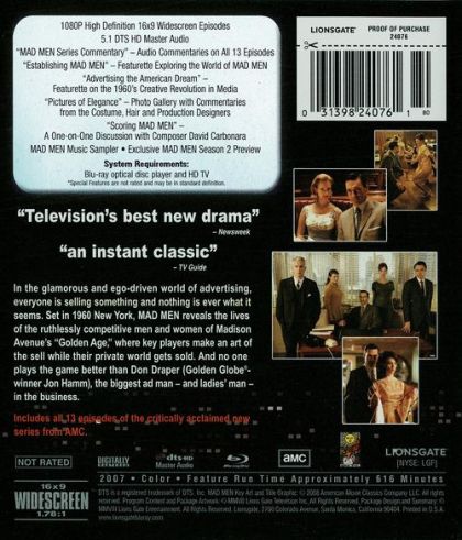 Set in 1960 New York, MAD MEN reveals the lives of the ruthlessly competitive men and women of Madison Avenue’s “Golden Age”, where key players make the art of the sell while their private lives get sold. And no one plays the game better than Don Draper (Golden Globe®-winner Jon Hamm), the biggest ad man – and ladies man in the business.