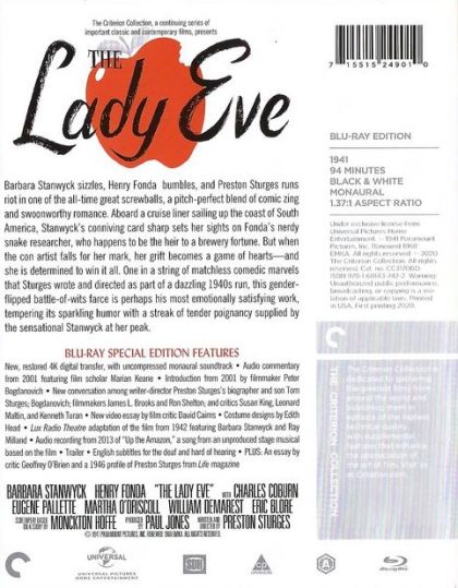 Barbara Stanwyck sizzles, Henry Fondabumbles, and Preston Sturges runs riot in one of the all-time great screwballs, a pitch-perfect blend of comic zing and swoonworthy romance. Aboard a cruise liner sailing up the coast of South America, Stanwyck’s conniving card sharp sets her sights on Fonda’s nerdy snake researcher, who happens to be the heir to a brewery fortune. But when the con artist falls for her mark, her grift becomes a game of hearts-and she is determined to win it all. One in a string of matchless comedic marvels that Sturges wrote and directed as part of a dazzling 1940s run, this gender-flipped battle-of-wits farce is perhaps his most emotionally satisfying work, tempering its sparkling humor with a streak of tender poignancy supplied by the sensational Stanwyck at her peak.