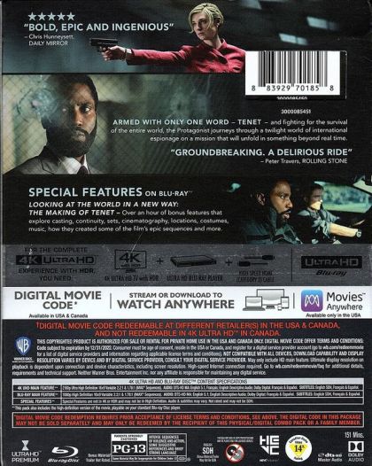 Armed with only one word - Tenet - and fighting for the survival of the entire world, the Protagonist journeys through a twilight world of international espionage on a mission that will unfold in something beyond real time.