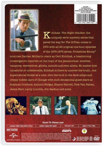 Kolchak was originally two made-for-TV movies that aired in the early 70's, and featured the adventures of Carl Kolchak, a down-on-the heels reporter who ran afoul of a vampire in Las Vegas and an alchemist in Seattle. These movies proved popular enough that they were spun off into a series, which placed Kolchak in Chicago with the Independent News Service. Each week for 20 weeks he investigated various supernatural and supranatural creatures, ranging from aliens to vampires to Aztec sacrificial cults. Although it only lasted one season on ABC, Kolchak has remained a cult favorite and been kept alive through the efforts of creator Jeffrey Grant Rice, Mark Dawidziak, and the folks at Moonstone Comics, who have two Kolchak comics going (see Links). There's an anthology of Kolchak stories coming out this year and discussion of a new Night Stalker (2005) series produced by The X-Files's Frank Spotnitz for ABC.