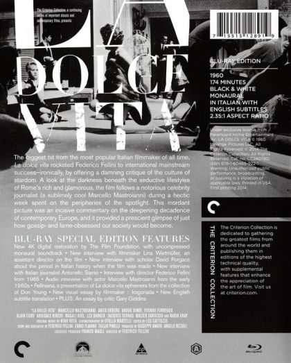 The biggest hit from the most popular Italian filmmaker of all time, La dolce vita rocketed Federico Fellini to international mainstream success-ironically, by offering a damning critique of the culture of stardom. A look at the darkness beneath the seductive lifestyles of Rome’s rich and glamorous, the film follows a notorious celebrity journalist (a sublimely cool Marcello Mastroianni) during a hectic week spent on the peripheries of the spotlight. This mordant picture was an incisive commentary on the deepening decadence of contemporary Europe, and it provided a prescient glimpse of just how gossip- and fame-obsessed our society would become.