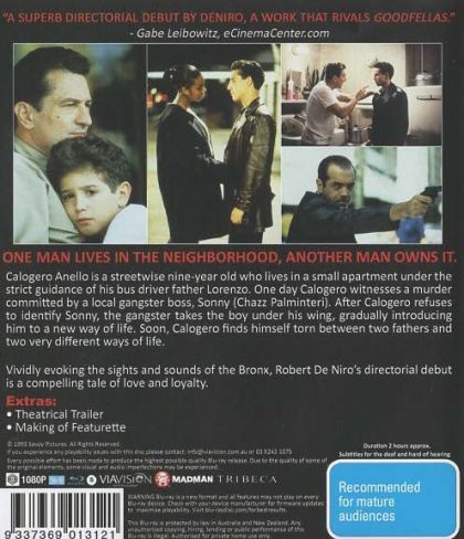 Set in the Bronx during the tumultuous 1960s, an adolescent boy is torn between his honest, working-class father and a violent yet charismatic crime boss. Complicating matters is the youngster's growing attraction - forbidden in his neighborhood - for a beautiful black girl.