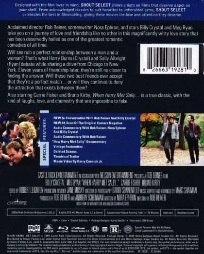 “When Harry Met Sally remains a funny and heartfelt example of the genre done right. For its 30th anniversary, Shout Factory has put together a lovely new Blu-ray release, complete with a restored HD transfer sourced from a 4K scan of the original camera negative. A new retrospective conversation between director Rob Reiner and star Billy Crystal also rounds out the package, cementing this disc as a very solid double dip. Recommended.” – Steven Cohen, High-Def Digest
