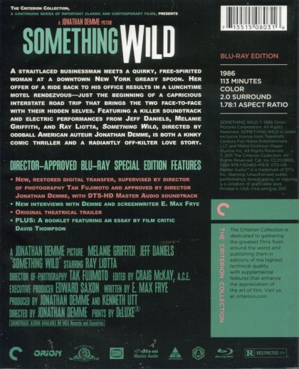 A straitlaced businessman meets a quirky, free-spirited woman at a downtown New York greasy spoon. Her offer of a ride back to his office results in a lunchtime motel rendezvous—just the beginning of a capricious interstate road trip that brings the two face-to-face with their hidden selves. Featuring a killer soundtrack and electric performances from Jeff Daniels, Melanie Griffith, and Ray Liotta, Something Wild, directed by oddball American auteur Jonathan Demme, is both a kinky comic thriller and a radiantly off-kilter love story.