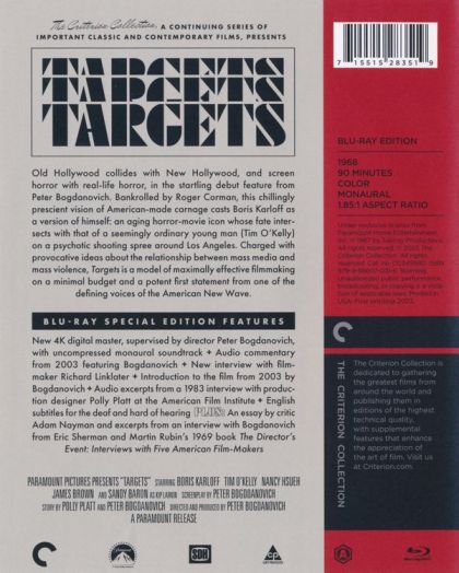 Old Hollywood collides with New Hollywood, and screen horror with real-life horror, in the startling debut feature from Peter Bogdanovich. Produced by Roger Corman, this chillingly prescient vision of American-made carnage casts Boris Karloff as a version of himself: an aging horror-movie icon whose fate intersects with that of a seemingly ordinary young man (Tim O’Kelly) on a psychotic shooting spree around Los Angeles. Charged with provocative ideas about the relationship between mass media and mass violence, Targets is a model of maximally effective filmmaking on a minimal budget and a potent first statement from one of the defining voices of the American New Wave.