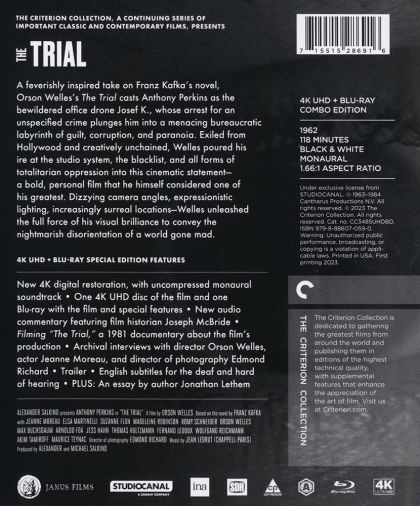 A feverishly inspired take on Franz Kafka’s novel, Orson Welles’s The Trial casts Anthony Perkins as the bewildered office drone Josef K., whose arrest for an unspecified crime plunges him into a menacing bureaucratic labyrinth of guilt, corruption, and paranoia. Exiled from Hollywood and creatively unchained, Welles poured his ire at the studio system, the blacklist, and all forms of totalitarian oppression into this cinematic statement—a bold, personal film that he himself considered one of his greatest. Dizzying camera angles, expressionistic lighting, increasingly surreal locations—Welles unleashed the full force of his visual brilliance to convey the nightmarish disorientation of a world gone mad.