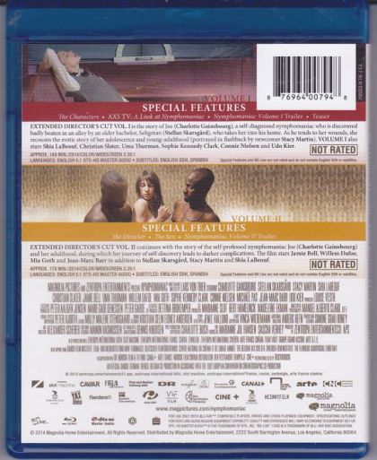 A man named Seligman finds a fainted wounded woman in an alley and he brings her home. She tells him that her name is Joe and that she is nymphomaniac. Joe tells her life and sexual experiences with hundreds of men since she was a young teenager while Seligman tells about his hobbies, such as fly fishing, reading about Fibonacci numbers or listening to organ music.