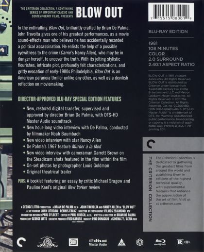 Restored digital transfer, supervised and approved by director Brian De Palma, with DTS-HD Master Audio soundtrack on the Blu-ray edition