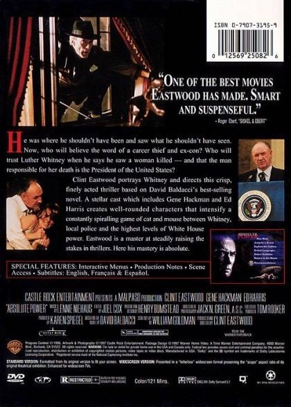 Based on the novel by David Baldacci, Eastwood stars as Luther Whitney, a master thief close to retirement. He has chosen a high-profile target as his last career job. Luther’s mission-to break into the political powerbroker’s mansion and raid the hidden vault. In the midst of the burglary, Luther witnesses a bizarre murder involving the President of the United States (Hackman), the President’s Chief of Staff (Davis) and two secret service agents. Almost immediately, a cover-up is set in motion with Luther implicated by the perpetrators.