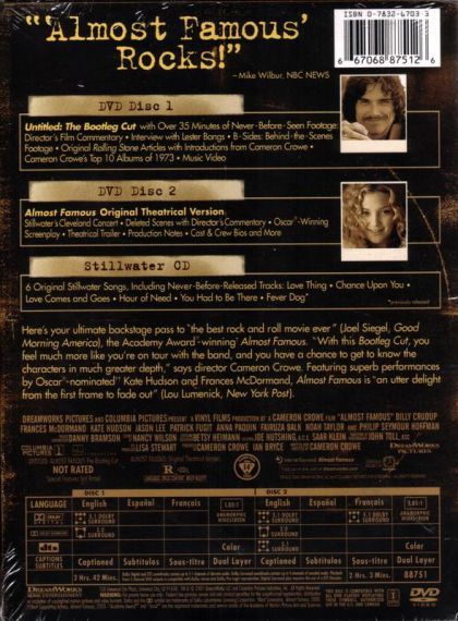 Almost Famous: Untitled-The Bootleg Cut offers an extended version of the original Oscar®-winning film. Culled from the memory of writer-director, Cameron Crowe, Almost Famous follows the exploits of young William Miller (Fugit), a 15-year-old music fan and aspiring writer in the mid-1970s. This is top-notch salute to an unforgettable time in rock ’n roll history. (Suzanne Hodges/Laurie Sevano)