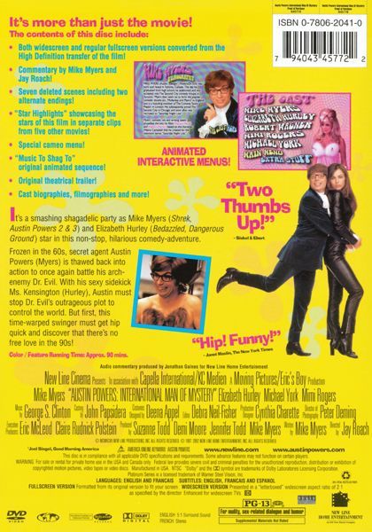 Frozen in the 1960s, secret agent Austin Powers (Myers) is thawed back into action in 1997 to once again battle his arch-nemesis, Dr. Evil (Myers in a dual role). But first, this time-warped swinger must get hip quick and discover that there is no free love in the ’90s.