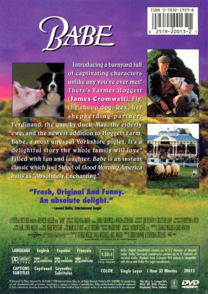 Babe is a little pig who doesn't quite know his place in the world. With a bunch of odd friends, like Ferdinand the duck who thinks he is a rooster and Fly the dog he calls mom, Babe realizes that he has the makings to become the greatest sheep pig of all time, and Farmer Hogget knows it. With the help of the sheep dogs Babe learns that a pig can be anything that he wants to be.