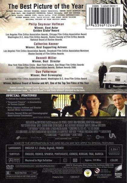Capote is the biographical film about writer Truman Capote and his assignment for The New Yorker to write the non-fiction book In Cold Blood. Philip Seymour Hoffman won an Oscar for Best Actor for his portrayal of Capote.