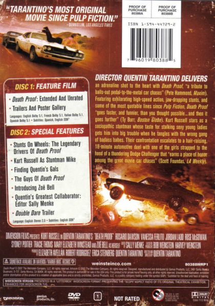 Directors Quentin Tarantino and Robert Rodriguez present two full-length movies in a new horror double feature. In Tarantino's "Death Proof," Austin's hottest DJ, Jungle Julia, sets out into the night to unwind with her two friends Shanna an Arlene. Covertly tracking their moves is Stuntman Mike, a scarred rebel leering from behind the wheel of his muscle car, revving just feet away.
