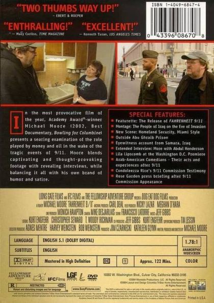 | Producer | Jim Czarnecki, Rita Dagher, Carl Deal, Joanne Doroshow, Kurt Engfehr, Jeff Gibbs, Kathleen Glynn, Monica Hampton, Nicky Lazar, Tia Lessin, Jay Martel, Agnès Mentre, Anne Moore, Michael Moore, Rachelle Murway, Meghan O'Hara, Bob Weinstein, Harvey Weinstein | |