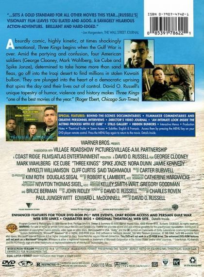 The Gulf War is over and most of the soldiers are partying and planning their homecoming, four American soldiers (Clooney, Wahlberg, Cube & Jonze) are planning their treasure hunt for stolen Kuwaiti gold. But these Three Kings (Jonze’s character was allowed to tag along) are sidetracked from their selfish plans to help a group of Iraqi prisoners to safety in a refugee camp.