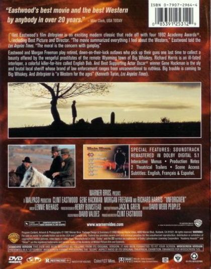 Eastwood produced and directed this modern Western which rode off with four 1992 Academy Awards®, including Best Picture and Best Director. Eastwood and Freeman play retired, down-on-their-luck outlaws William Munny and Ned Logan, who pick up their guns one more time to collect a bounty offered by vengeful prostitutes for the defacing of one of theirs by a drunken cowboy.