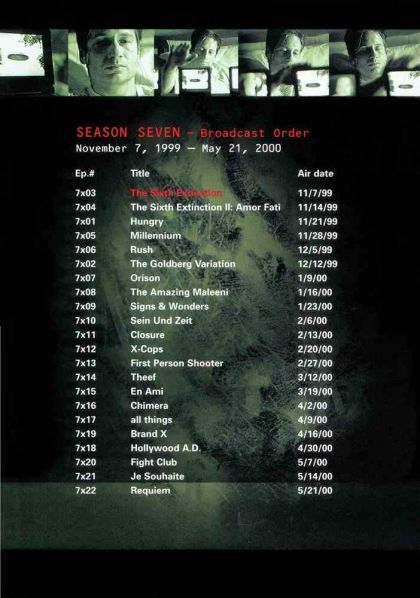 In this backdoor series finale to Millennium (1996), Mulder and Scully ask Frank Black to help them prevent a zombie apocalypse orchestrated by the rogue members of the now disbanded Millennium Group on the very eve of the new millennium.