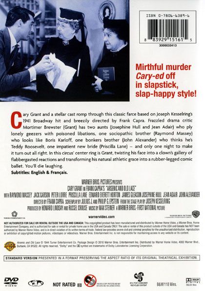On his wedding day, drama critic Mortimer Brewster (Grant) find out about his sweet maiden aunts' macabre approach to charity.