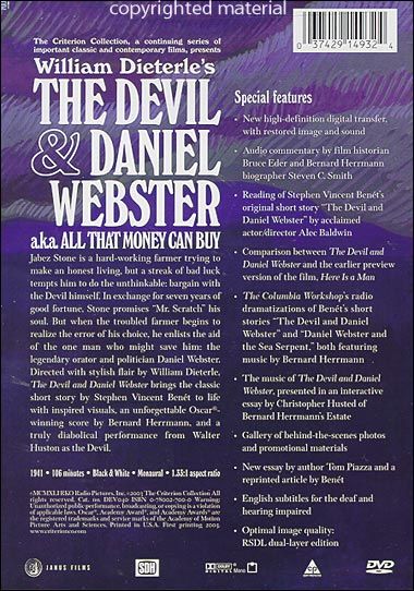 A 19th Century New Hampshire farmer who makes a compact with the Devil for economic success enlists Daniel Webster to extract him from his contract.
