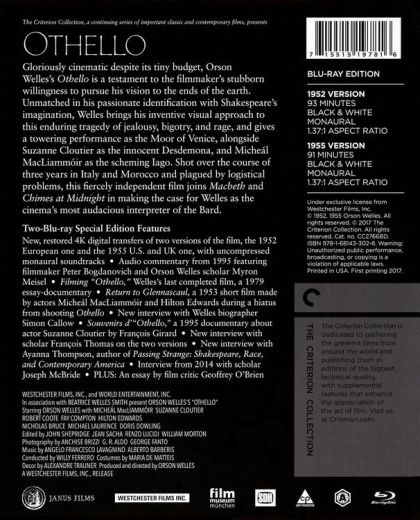 Gloriously cinematic despite its tiny budget, Orson Welles’s Othello is a testament to the filmmaker’s stubborn willingness to pursue his vision to the ends of the earth. Unmatched in his passionate identification with Shakespeare’s imagination, Welles brings his inventive visual approach to this enduring tragedy of jealousy, bigotry, and rage, and also gives a towering performance as the Moor of Venice, alongside Suzanne Cloutier as the innocent Desdemona, and Micheál MacLiammóir as the scheming Iago. Shot over the course of three years in Italy and Morocco and plagued by many logistical problems, this fiercely independent film joins Macbeth and Chimes at Midnight in making the case for Welles as the cinema’s most audacious interpreter of the Bard.