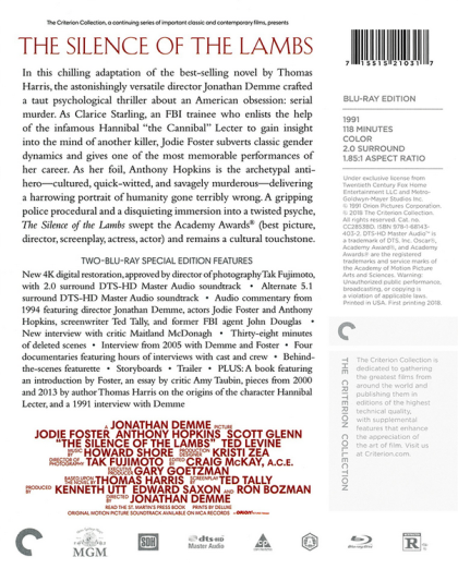 PLUS: A book featuring an introduction by Foster, an essay by critic Amy Taubin, pieces from 2000 and 2013 by author Thomas Harris on the origins of the character Hannibal Lecter, and a 1991 interview with Demme
