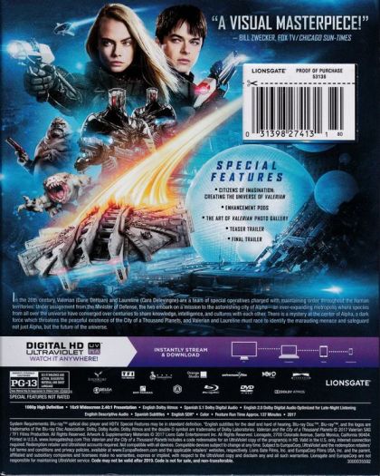 In the 28th century, Valerian and Laureline are special operatives charged with keeping order throughout the human territories. On assignment from the Minister of Defense, the two undertake a mission to Alpha, an ever-expanding metropolis where species from across the universe have converged over centuries to share knowledge, intelligence, and cultures. At the center of Alpha is a mysterious dark force which threatens the peaceful existence of the City of a Thousand Planets, and Valerian and Laureline must race to identify the menace and safeguard not just Alpha, but the future of the universe.