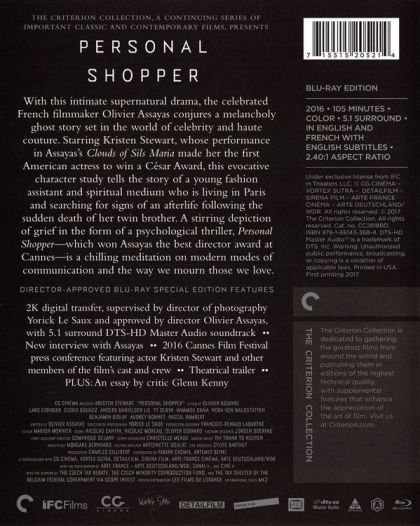 2K digital transfer, supervised by director of photography Yorick Le Saux and approved by director Olivier Assayas, with 5.1 surround DTS-HD Master Audio soundtrack on the Blu-ray