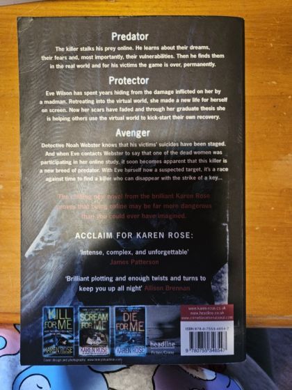 In Karen Rose's brilliant thriller I CAN SEE YOU, the first in her Minneapolis series, a killer is targeting the participants of an online role-playing game called Shadowland. Each of the victims is be-friended by the killer online. He then stalks them in real life, murdering them in the way that they worst fear. Eve Wilson, who we previously met in NOTHING TO FEAR, is researching the game as part of her thesis on how self-esteem is affected by violence. Now she must work with Detective Noah Webster to find the murderer before the killings escalate out of all control and Eve herself becomes a target.
