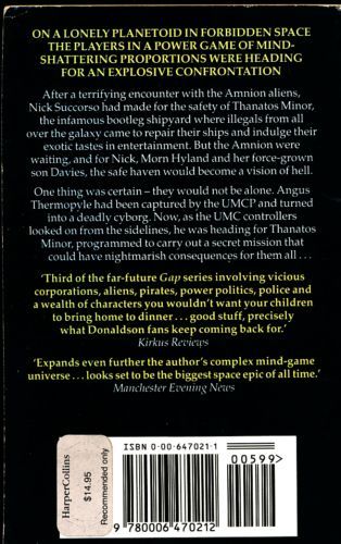 A new-cover reissue of the third book in the bestselling five-volume sf series created by the world-famous author of the Thomas Covenant chronicles -- and acclaimed as the 'best work of his career'. On a lonely planetoid in forbidden space, the players in a power game of mind-shattering proportions were heading for an explosive confrontation. After a terrifying encounter with the Amnion aliens, Nick Succorso had made for the safety of Thanatos Minor, the infamous bootleg shipyard where illegals from all over the galaxy came to repair their ships and indulge their exotic tastes in entertainment. But the Amnion were waiting, and for Nick, Morn Hyland and her force-grown son Davies, the safe haven would become a vision of hell. Meanwhile, Angus Thermopyle had been captured by the UMCP and turned into a deadly cyborg. Now, as the UMC controllers looked on from the sidelines, he was heading for Thanatos Minor, programmed to carry out a secret mission that could have nightmarish consequences for them all...
