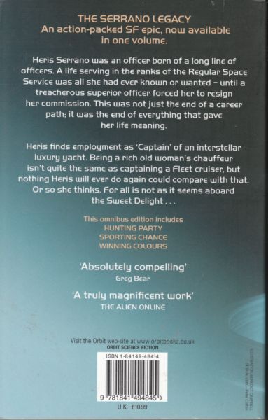 HUNTING PARTY: Heris Serrano was destined for a life in the Regular Space Service - until a treacherous superior officer forced her to resign her commission. This was the end of everything that gave her life meaning. But her new life aboard a rich old lady's space cruiser is nothing like she expected and she is soon fighting for her life. SPORTING CHANCE: On her first cruise, Heris exposed a sinister 'hunting club', where one of the hunters was first in line to the throne. To avoid scandal, Lady Cecelia volunteered to take her nephew the Prince home. His behaviour becomes increasingly erratic, Cecelia suspects foul play and once again Heris must investigate. WINNING COLOURS Heris has at last been offered a chance for vindication and reinstatement in her beloved Fleet - and reconciliation with her family. But it means standing alone against the military might of an interstellar criminal cartel with only a few small ships ...