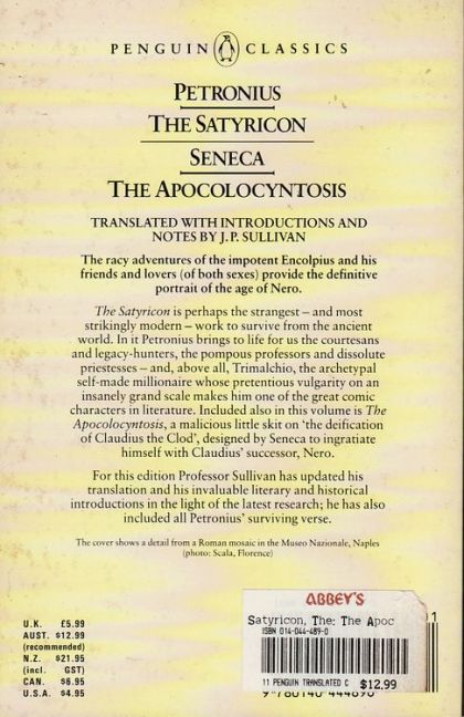 Perhaps the strangest—and most strikingly modern—work to survive from the ancient world, The Satyricon relates the hilarious mock epic adventures of the impotent Encolpius, and his struggle to regain virility. Here Petronius brilliantly brings to life the courtesans, legacy-hunters, pompous professors and dissolute priestesses of the age - and, above all, Trimalchio, the archetypal self-made millionaire whose pretentious vulgarity on an insanely grand scale makes him one of the great comic characters in literature. Seneca's The Apocolocyntosis, a malicious skit on 'the deification of Claudius the Clod', was designed by the author to ingratiate himself with Nero, who was Claudius' successor. Together, the two provide a powerful insight into a darkly fascinating period of Roman history.For more than seventy years, Penguin has been the leading publisher of classic literature in the English-speaking world. With more than 1,700 titles, Penguin Classics represents a global bookshelf of the best works throughout history and across genres and disciplines. Readers trust the series to provide authoritative texts enhanced by introductions and notes by distinguished scholars and contemporary authors, as well as up-to-date translations by award-winning translators.
